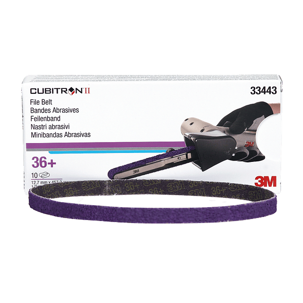Descripción La Banda Esmeriladora Cubitron™ II (tipo correa abrasiva) está diseñada con grano abrasivo de precisión de 3M™ y revestido en un respaldo resistente. Consolidada en resina para resistencia térmica. Revestido con un coadyuvante de esmerilaje para ayudar a reducir la acumulación de calor. Se utiliza para eliminar soldaduras por puntos. Ideal para trabajos exigentes y detallados como despinturado, limpieza, remoción de puntos de soldadura y acabados. Óptimo para trabajar en espacios de difícil acceso. Con tecnología Cubitron™ II. Rendimiento: Corta más rápido que los abrasivos convencionales. Durabilidad: Dura hasta el doble de tiempo que otro abrasivo, gracias a la tecnología de Cubitron™ II. Acabado: Más finos y uniformes. Productividad: Ahorra tiempo y dinero. Más piezas en menos tiempo. Comodidad: Se necesita menos presión al trabajar entre el abrasivo y el panel.
