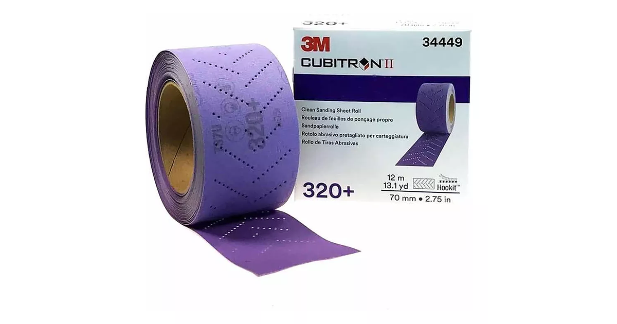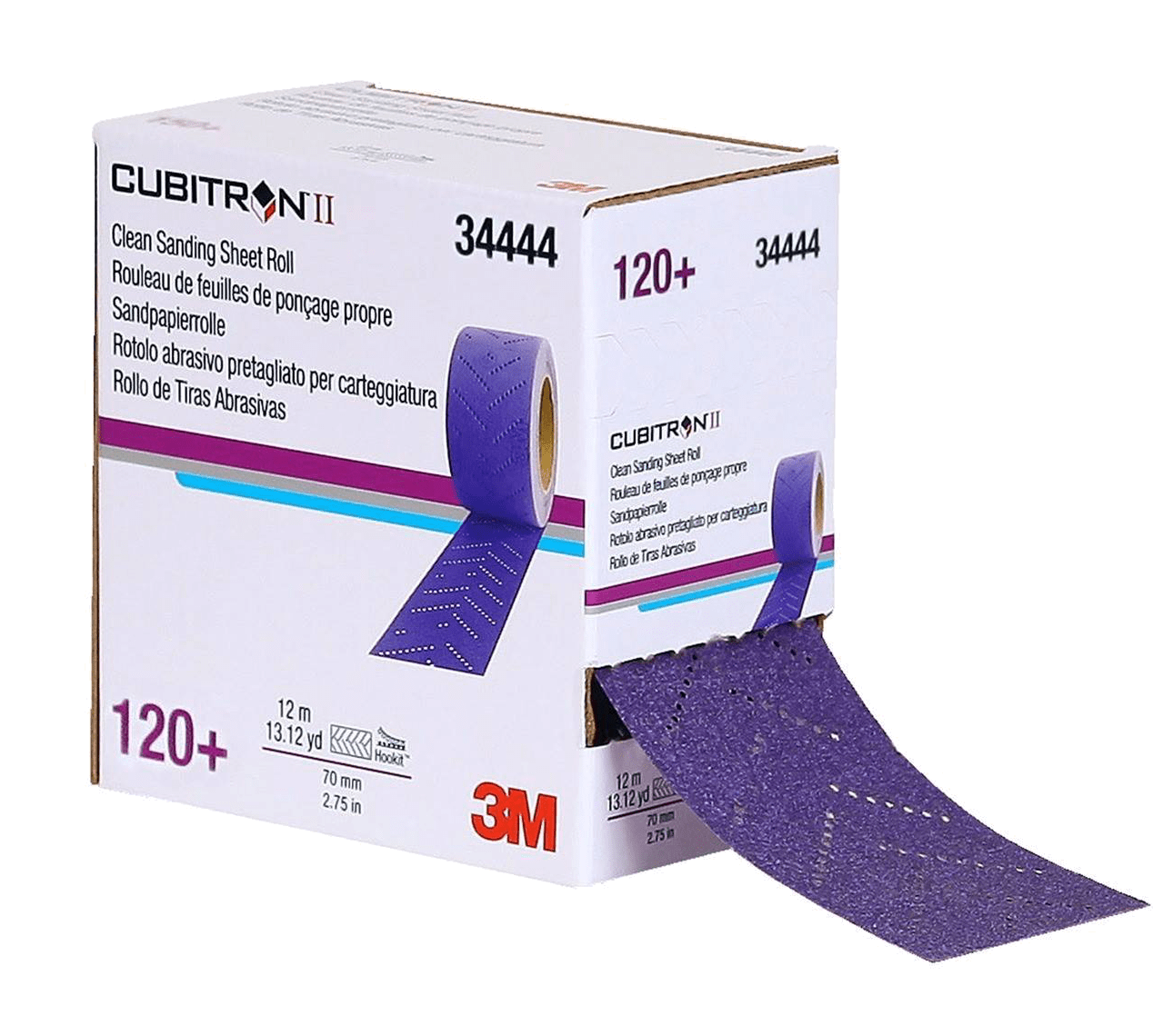 Lija en Rollo Cubitron II de 3M presenta un tamaño de hoja cómodo y fácil de cortar (lija en rollo prepicada) con poder de corte superior, mayor durabilidad y productividad. Esto se combina con un patrón de perforaciones que permite una mejor extracción y una excelente eliminación de polvo. Diseñada para la preparación de superficie antes de pintar.